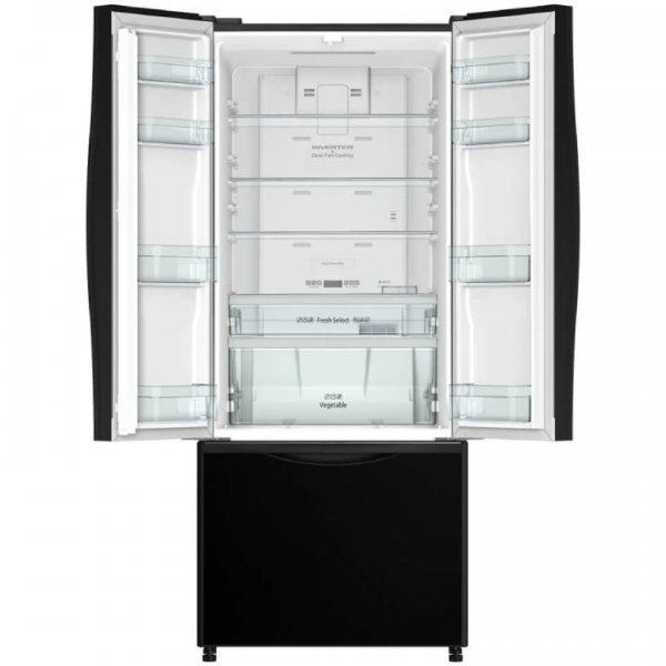 * Tested by Hitachi. Comparison between conventional in normal mode and new 3 Door French Bottom Freezer in Quick Cooling mode on top shelf.