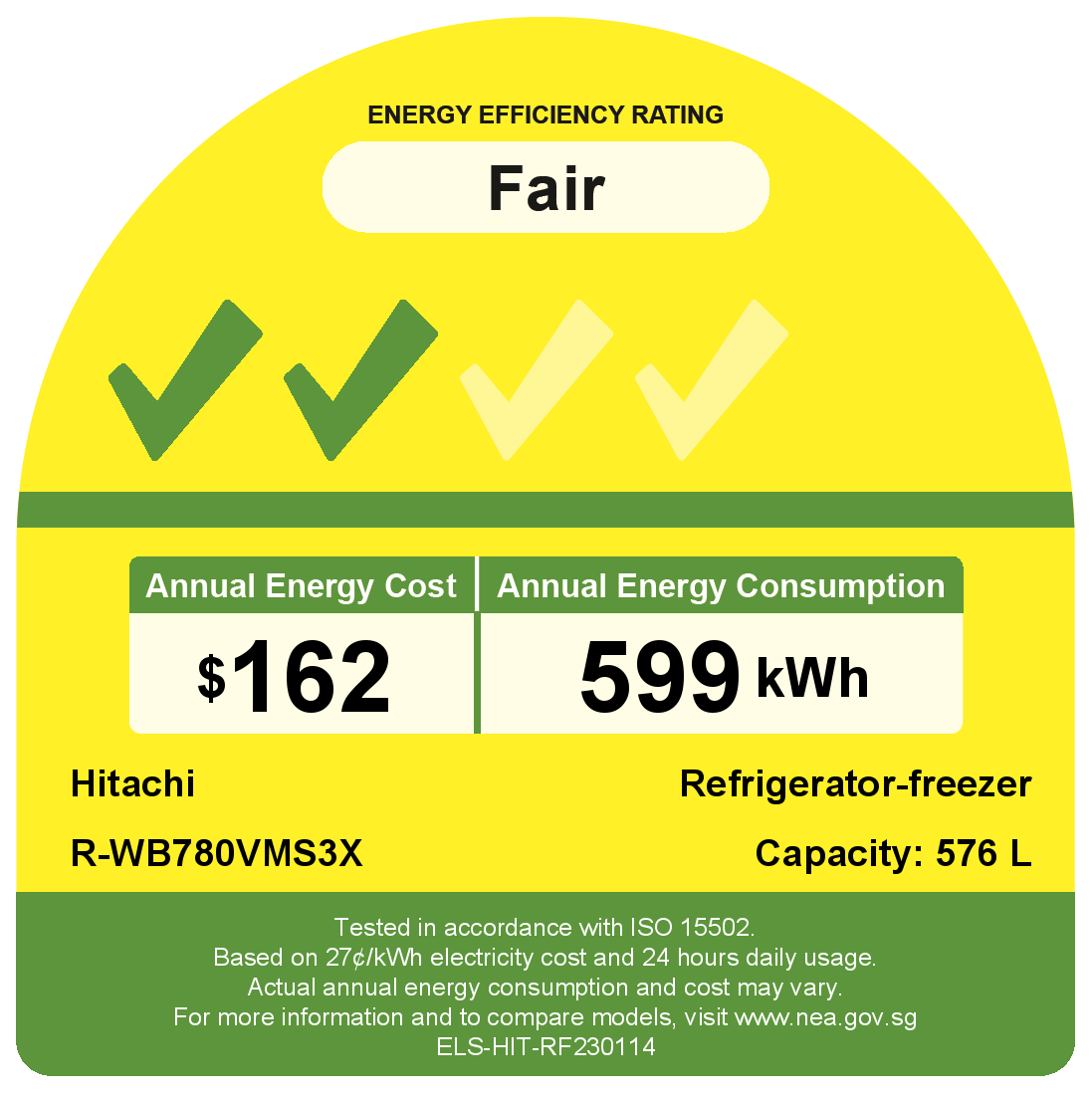 * Tested by Hitachi. Tested Model : R-WB64VGD0. K-value is an indication of freshness.